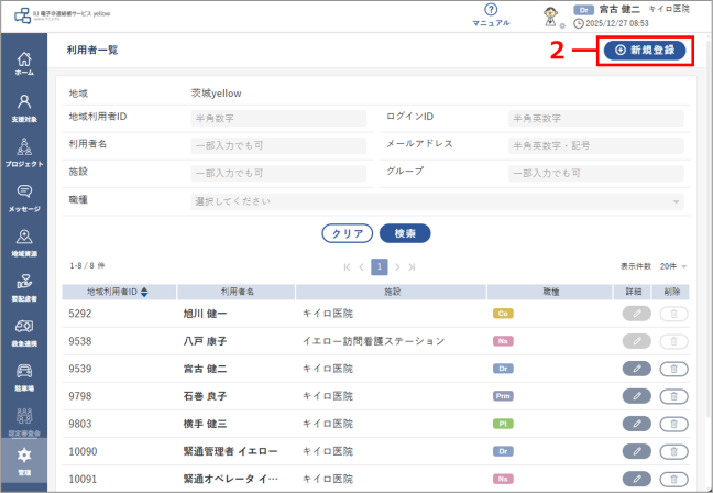 ➡ 利用者の登録が完了し、登録した利用者が[利用者一覧]画面に表示されます。