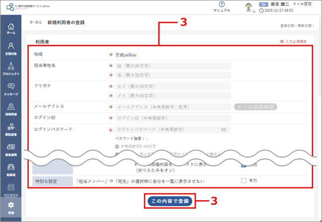 必要に応じて利用者情報を入力し、[この内容で登録]ボタンをクリックします。