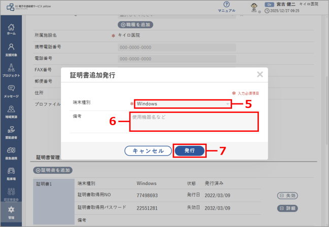 [発行]ボタンは、端末種別を選択していると表示されます。