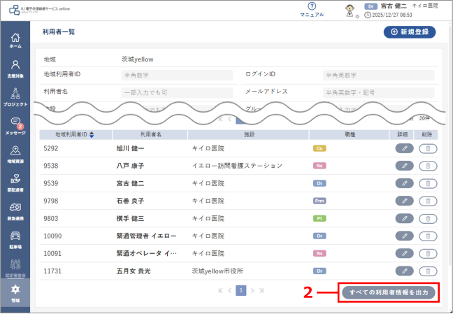 地域内のすべての利用者情報をcsv形式で出力できます。